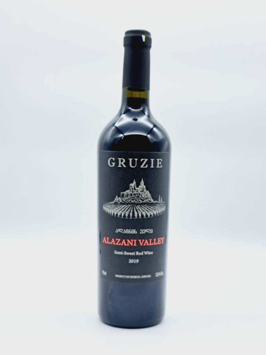 Odrůdové polosladké červené víno “Alazani Valley” je vyrobeno z nejkvalitnějších hroznů odrůdy Saperavi pěstovaných v okolí řeky Alazani nacházející se ve vinařském regionu Kachetie v Gruzii.